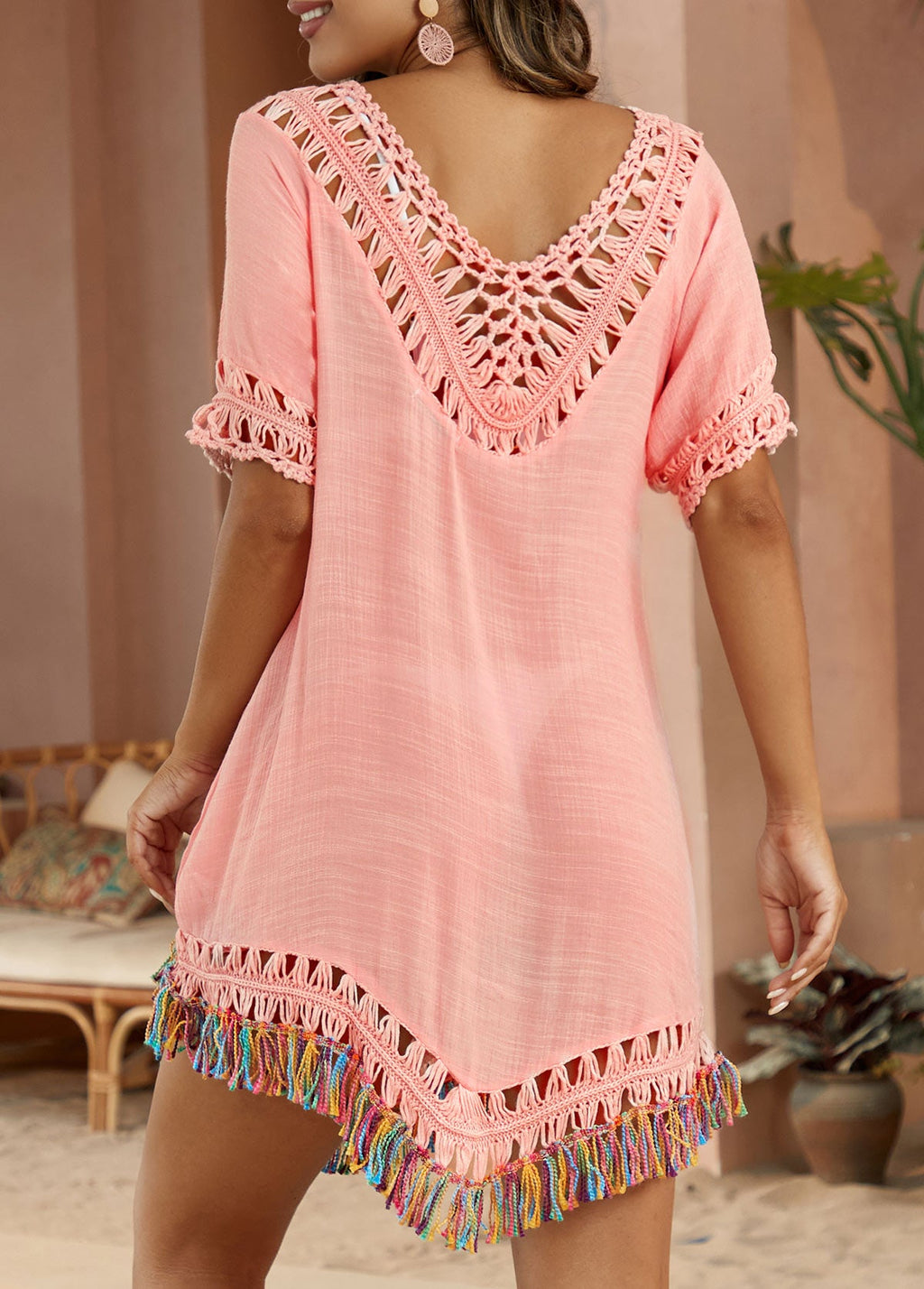 Saída de Praia com Crochê Colorido e Franjas Charmosas