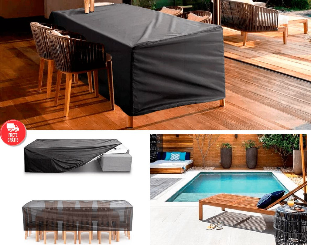 Feita com tecido Oxford 210D revestido com PVC impermeável e camada anti-UV, a capa protege seus móveis contra chuva, sol intenso, poeira, neve e até fezes de pássaros. Ideal para manter tudo sempre limpo, seco e conservado.