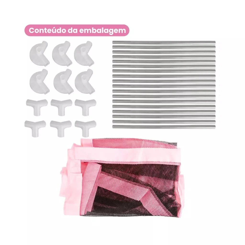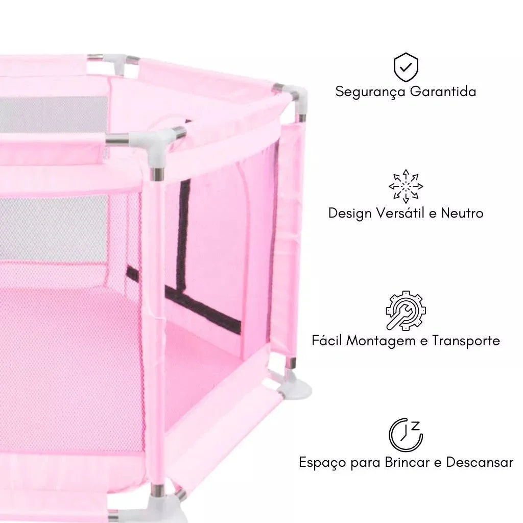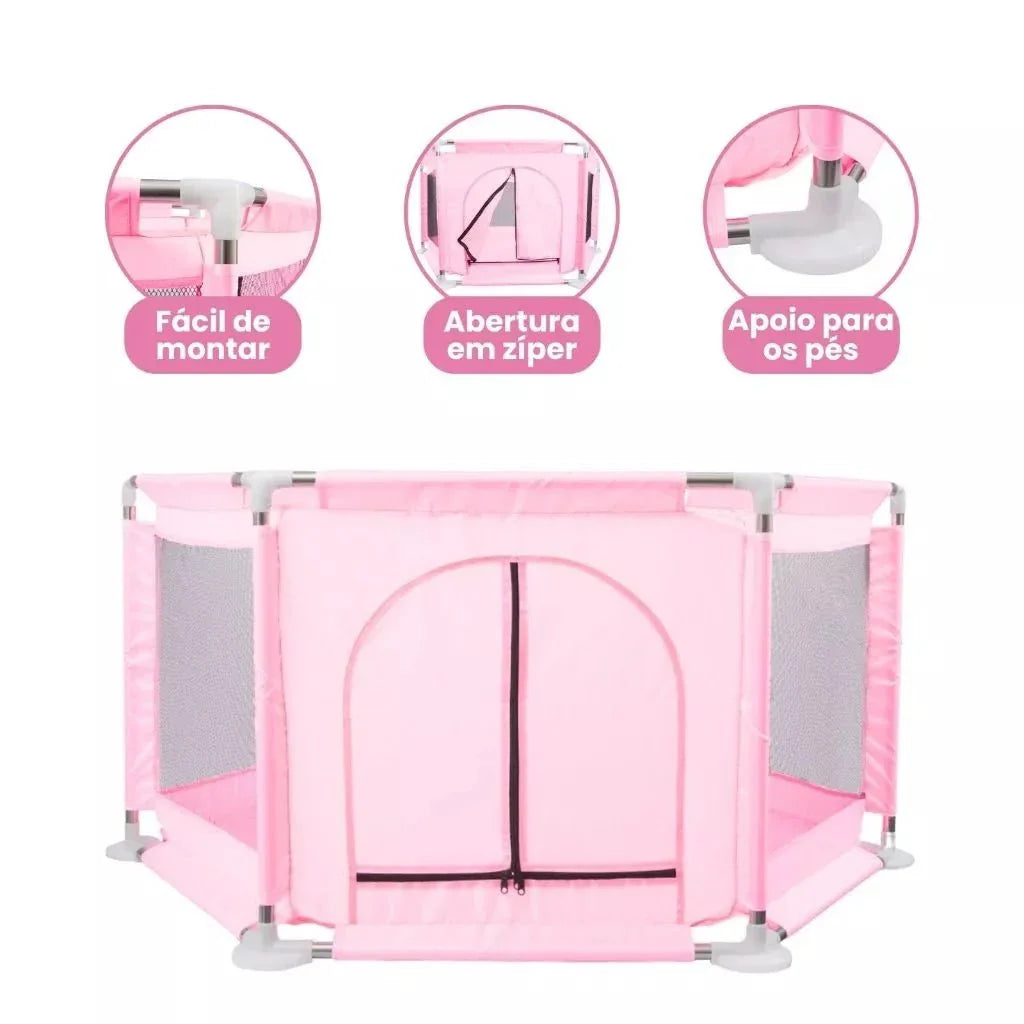Compacto e funcional, o cercadinho é feito com estrutura leve de tubos conectáveis, e tecido resistente e respirável. Ideal para manter o bebê entretido enquanto você realiza outras tarefas com tranquilidade.