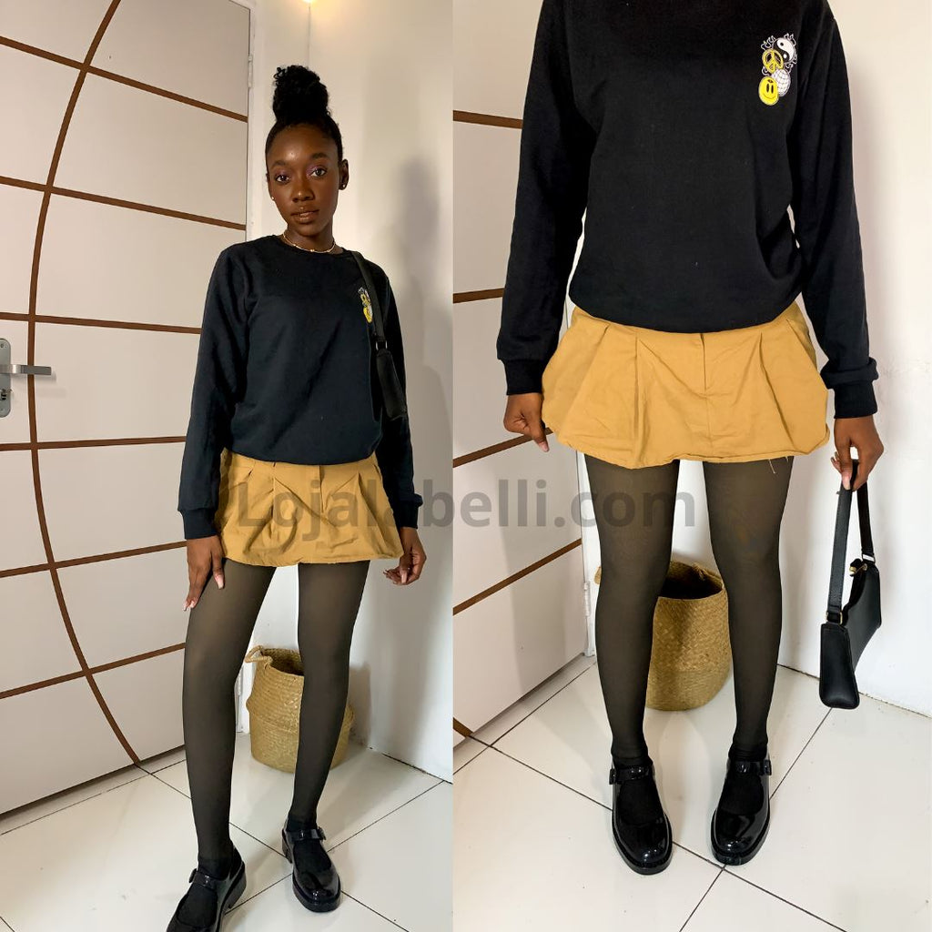 Essa Meia Calça é perfeita para usar com saias, vestidos e shorts sem passar frio! Ela imita o efeito fio 15, mas você estará vestindo uma calça macia e quentinha!
