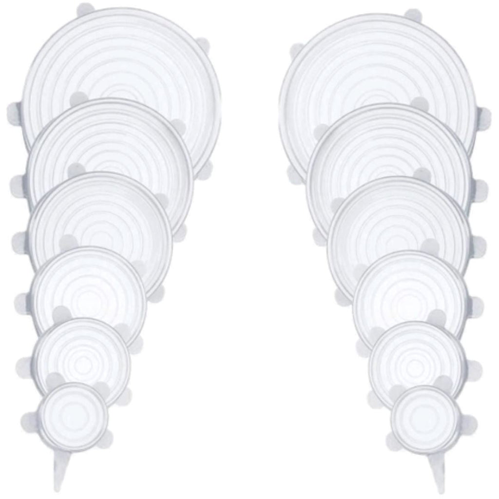 Compre 6 Leve 12 - Kit 12 Tampas de Silicone Reutilizável (UNIVERSAL) - Super Elástico