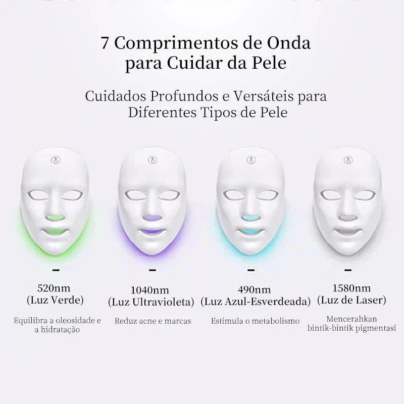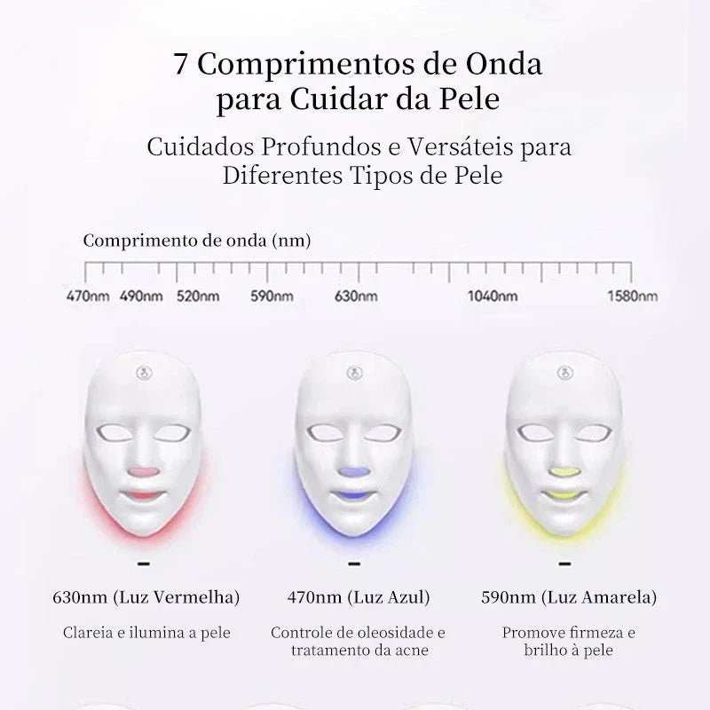 ✅ 7 Cores LED Terapêuticas – Cada cor atua em um problema específico da pele