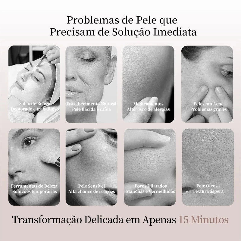Uma revolução no autocuidado: tecnologia LED que trata acne, oleosidade, manchas e flacidez com luzes terapêuticas de última geração.
